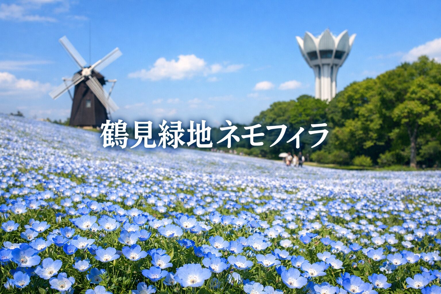 結論から言うと、2026年のネモフィラは花博記念公園鶴見緑地の「風車の丘」で、4月上旬~5月上旬まで見頃が続いています!